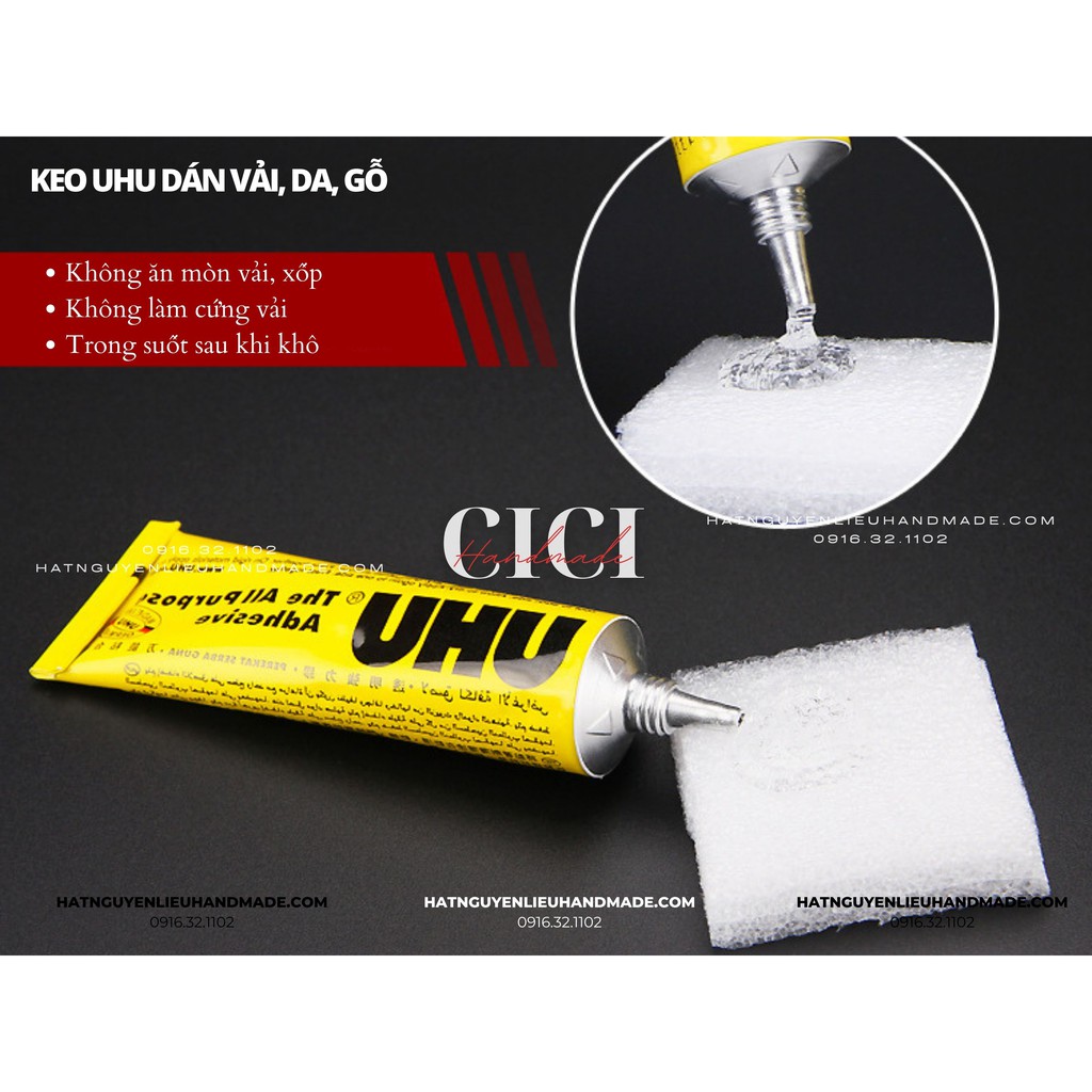 Sở thích & Sưu tầm > Dụng Cụ May Vá || Keo UHU dán vải, da, mô hình, đồ handmade, dán gỗ, dán giấy, da, kim loại, nỉ Cici handmade nguyên liệu đính kếtCòn hàng