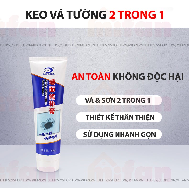 Nhà Cửa & Đời Sống > Dụng cụ & Thiết bị tiện ích > Sơn nhà cửa || Keo Vá Tường Chống Thấm LKB 250gr - Trám Trét Vết Nứt Khe Hở Tường - Chống Mốc Ẩm Làm Sạch Tường - HÀNG CHÍNH HÃNGCòn hàng