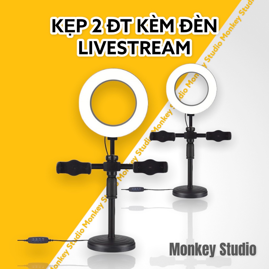 ✔️ Có đèn Led siêu sáng, giúp cho hình ảnh của bạn luôn sáng rõ đẹp khi phát Livestream Cùng với đế kẹp giúp giữ thăng bằng, Giá đỡ tiện dụng 2 điện thoại cùng 1 lúc.