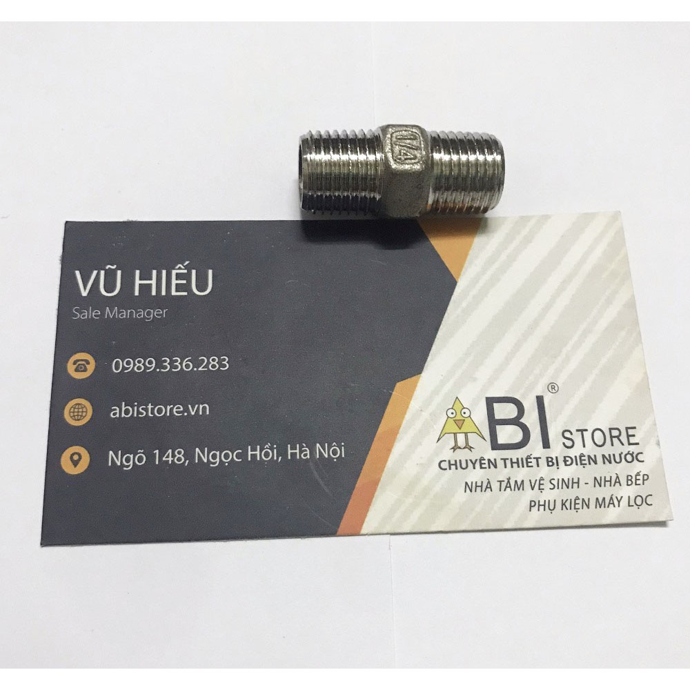 KÉP 1/4 INOX ĐÚC SẦN 2 ĐẦU REN NGOÀI NỐI ỐNG, KHỚP NỐI KÉP