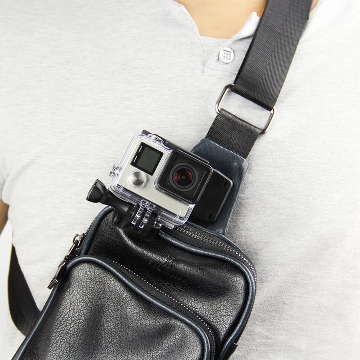 - Kẹp gắn GoPro Hero lên ba lô túi xách, dùng để quay các góc máy như chạy xe đạp, xe máy, xe moto hoặc các trò chơi cảm giác mạnh, giúp bạn ghi lại những khoảng khắc cực kỳ tuyệt vời.