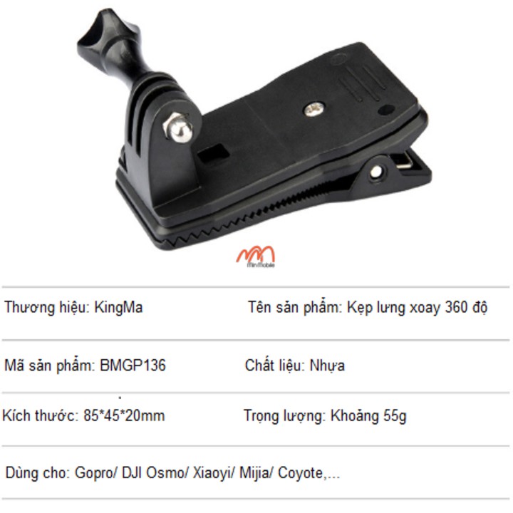 GIỚI THIỆU VỀ SẢN PHẨM KẸP BALO GẮN GOPRO , OSMO HIỆU KINGMAThông tin sản phẩm: