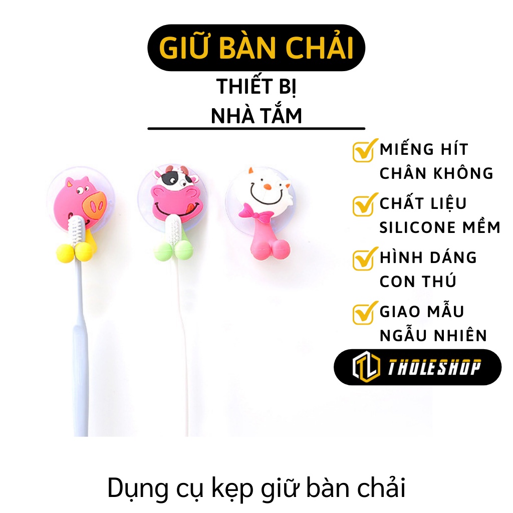 Kẹp Bàn Chải - Móc Treo Bàn Chải Đánh Răng Dán Tường Hút Chân Không Hình Thú 3590