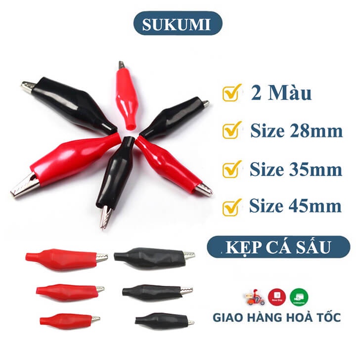 - Sản phẩm bao gồm: 1 kẹp kim loại + 1 vỏ nhựa (đỏ hoặc đen) cách điện