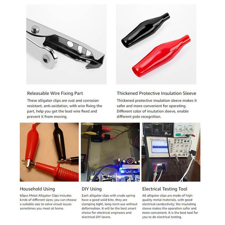 Kẹp cá sấu cho dây dò thử điện, kẹp ắc quy vỏ bọc cao su đủ kích thước 2 màu đỏ - đenĐặc điểm nổi bật: