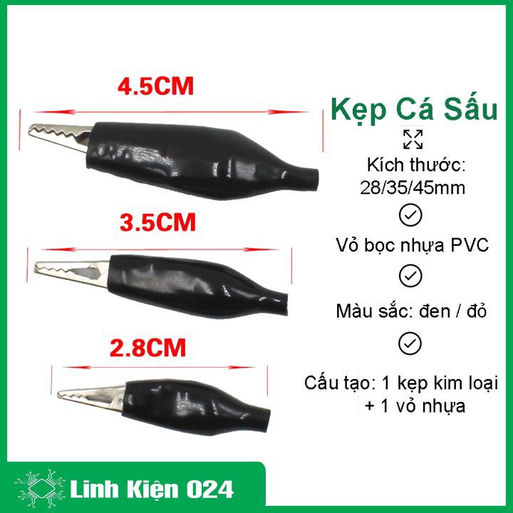 Giới thiệu Kẹp cá sấu to nhỏ đủ loại hai màu đen đỏ