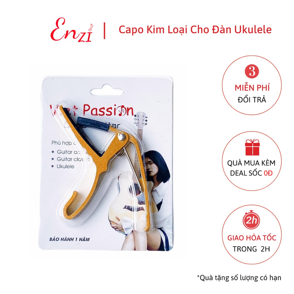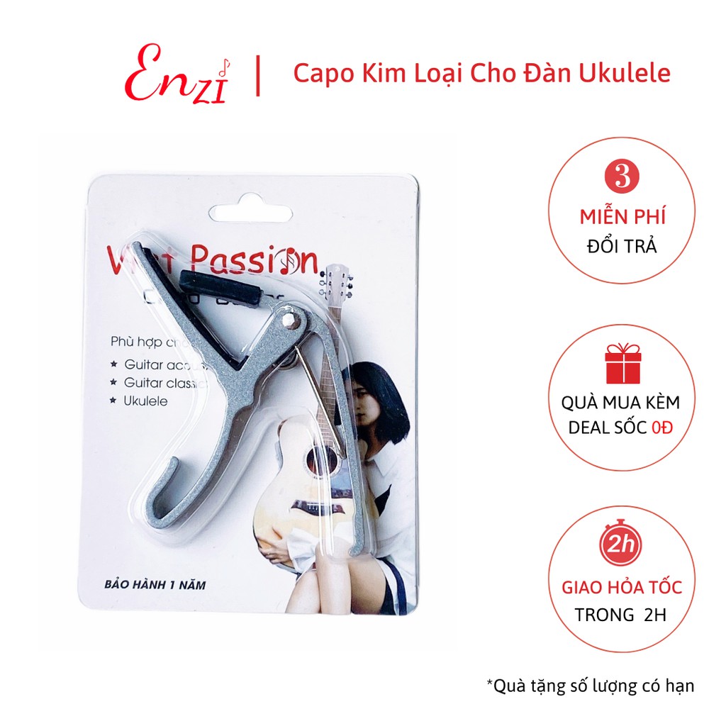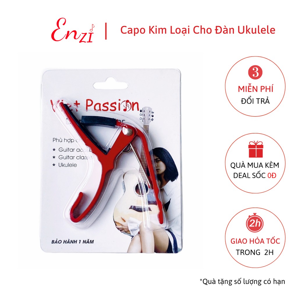 Kẹp capo cho đàn ukulele soprano 21 nich concer 23 inch tenor 26 inch Enzi bằng kim loại kẹp tăng tông hạ tông dùng cho mọi loại đàn ukuleleCapo ukulele kim loại là một phụ kiện quan trọng với người học ukulele, được sử dụng để nâng tông dây đàn lên một tông khác, nhằm phù hợp với quãng âm của người hát. Ngoài ra, capo ukulele kim loại còn giúp người chơi đàn chinh phục được những hợp âm khó nhằn.