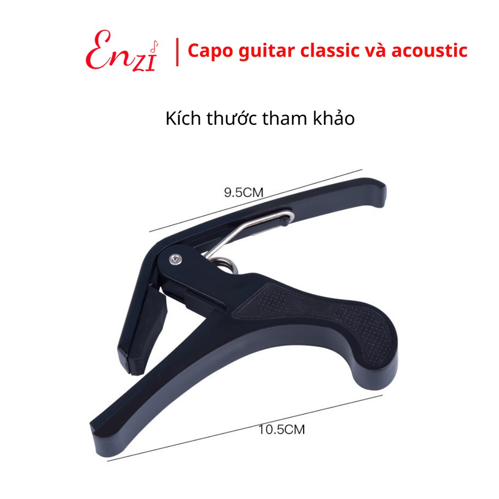 Kẹp capo guitar classic acoustic ukulele Enzi NHỰA lên tông hạ tông dùng cho mọi loại đàn ghitaCapo guitar classic acoustic là một phụ kiện quan trọng với người học guitar, được sử dụng để nâng tông dây đàn lên một tông khác, nhằm phù hợp với quãng âm của người hát. Ngoài ra, capo guitar classic còn giúp người chơi đàn chinh phục được những hợp âm khó nhằn.
