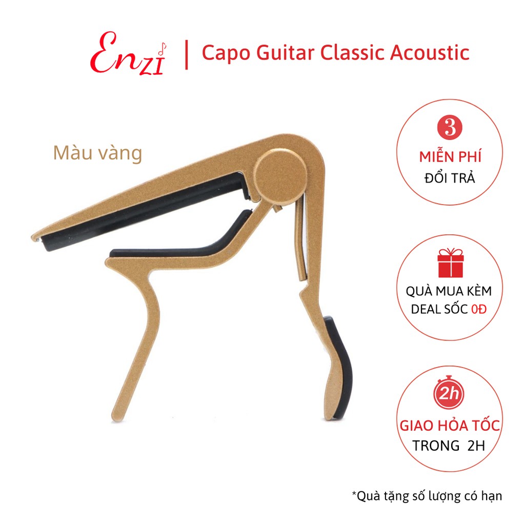 Sở thích & Sưu tầm > Nhạc Cụ & Phụ Kiện > Phụ Kiện Âm Nhạc || Kẹp capo nhỏ guitar classic acoustic kim loại màu vàng Enzi lên tông hạ tông dùng cho mọi loại đàn ghitaCòn hàng