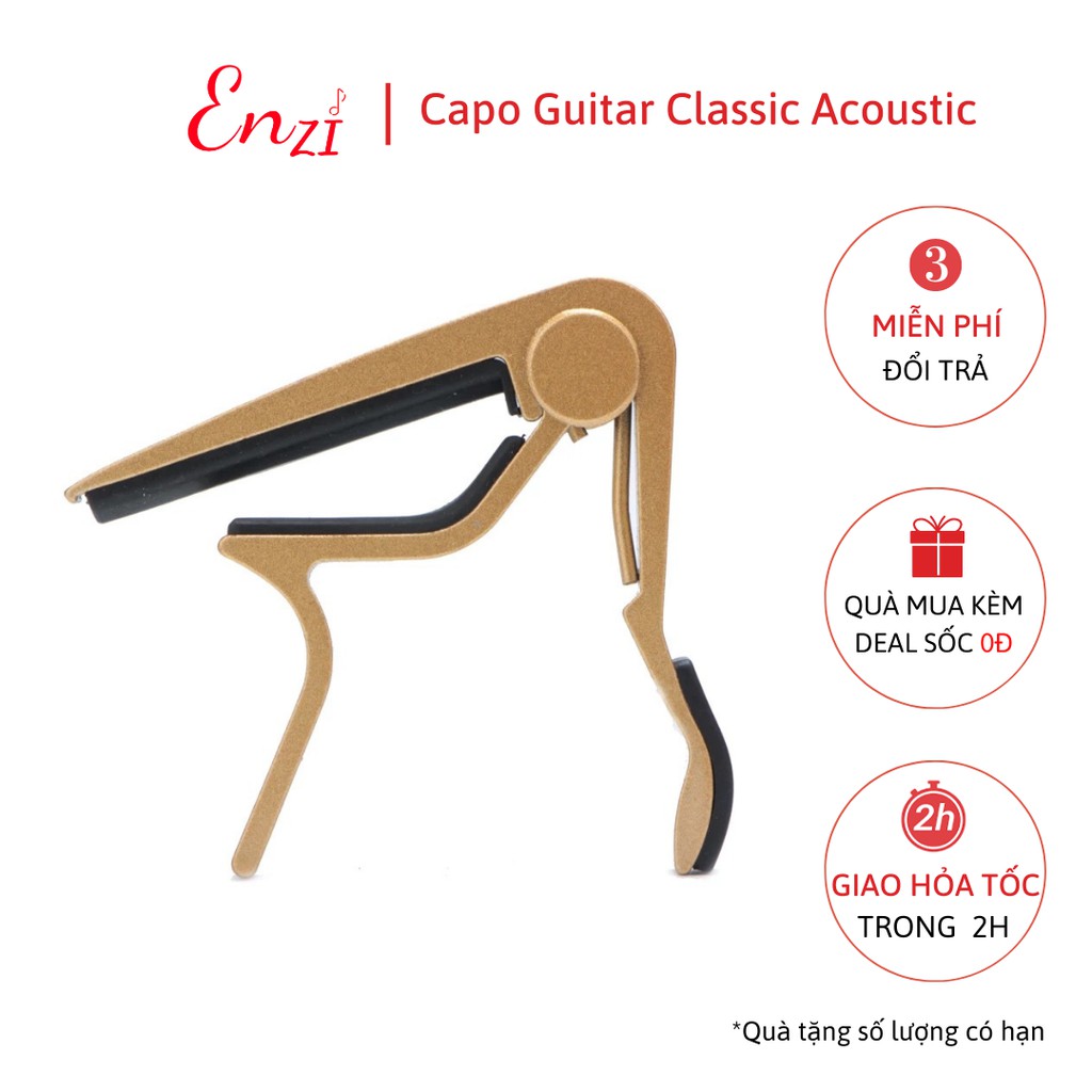 Kẹp capo guitar classic acoustic kim loại màu xanh dương Enzi lên tông hạ tông dùng cho mọi loại đàn ghitaCapo guitar classic acoustic là một phụ kiện quan trọng với người học guitar, được sử dụng để nâng tông dây đàn lên một tông khác, nhằm phù hợp với quãng âm của người hát. Ngoài ra, capo guitar classic còn giúp người chơi đàn chinh phục được những hợp âm khó nhằn.