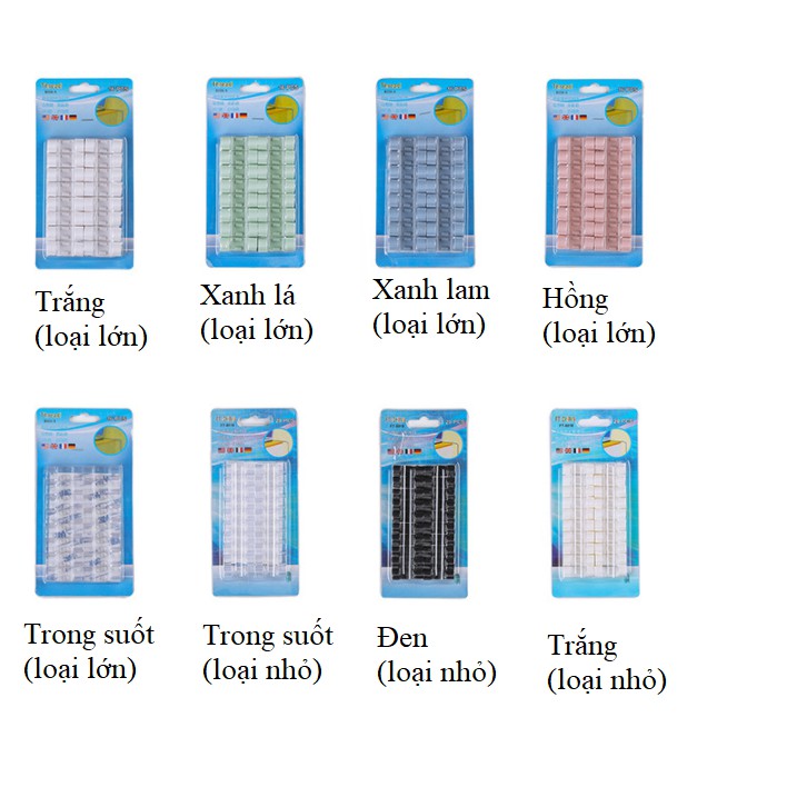 Kích thước 40 x 15 x 15 mm, gồm 16 kẹp (giá 30k/vỉ)