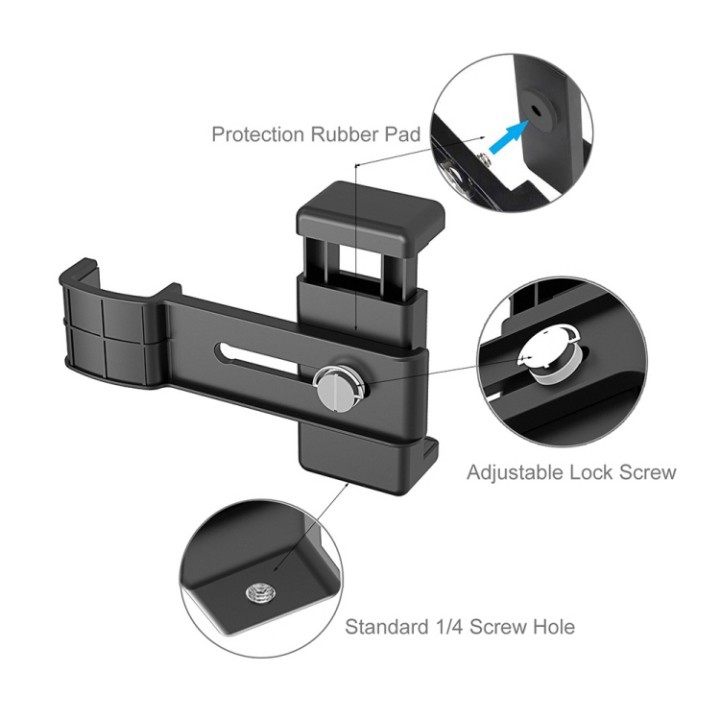 Được thiết kế để giữ điện thoại và OSMO Pocket đồng thời giúp việc chụp ảnh hoặc quay phim một cách thuận tiện hơnCác lỗ tiêu chuẩn 1/4 inch và có thể điều chỉnh độ rộng 56-85mm kẹp điện thoại di động, tương tích với hầu hết mọi thiết bị di động thông minh hiện nay