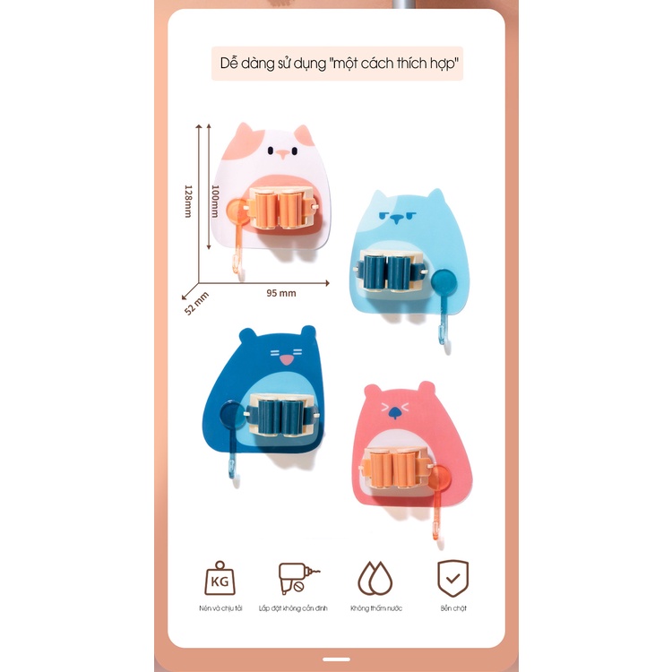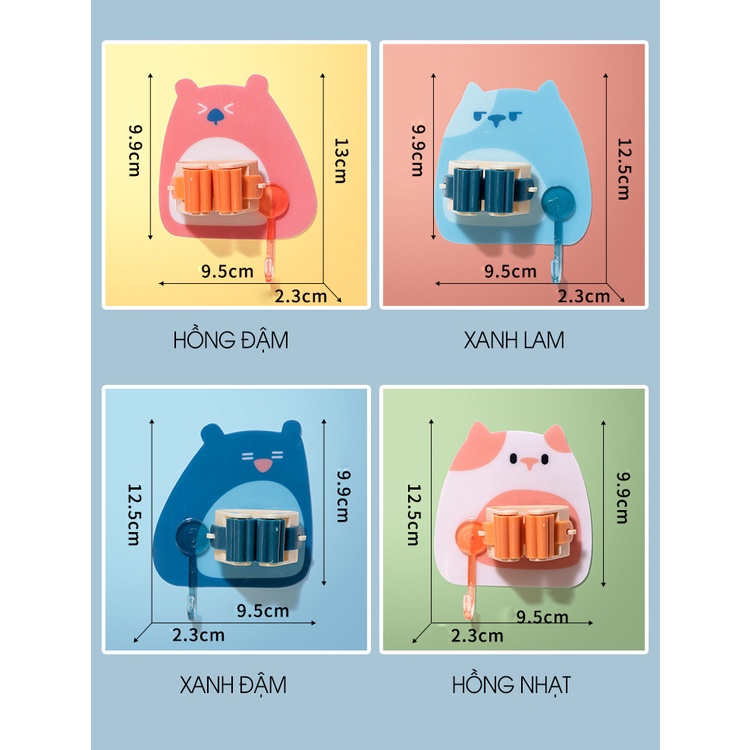 Kẹp dán tường giữ cây lau nhà hoạt hình cute, có móc treo