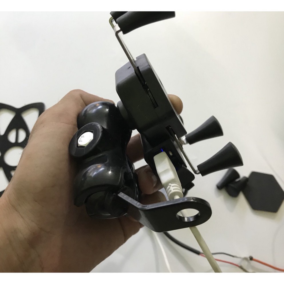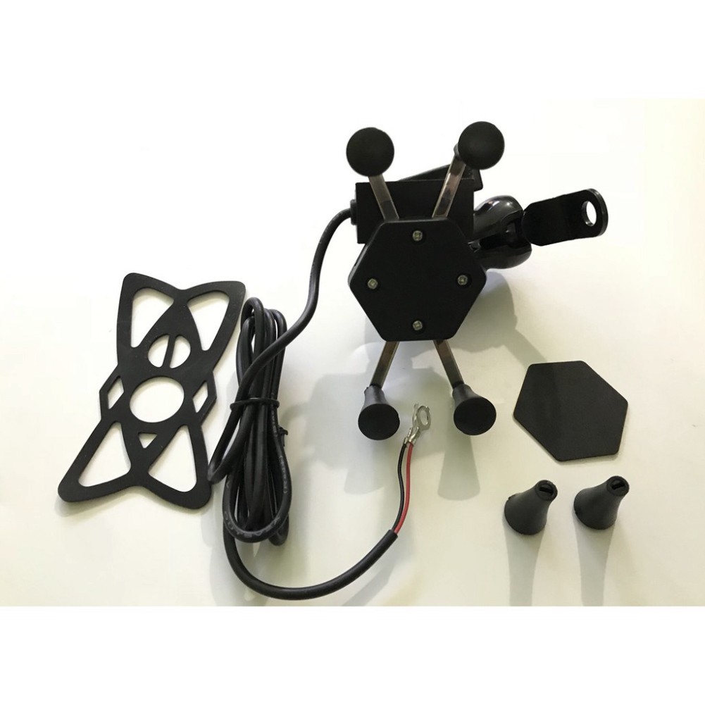 Kẹp Điện Thoại Chân Gương Gắn Xe Máy Mẫu Chân Nhện có Sạc Uber Grab