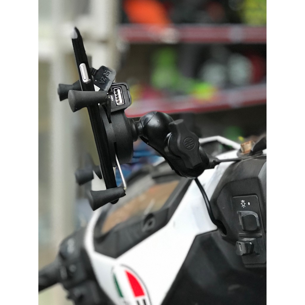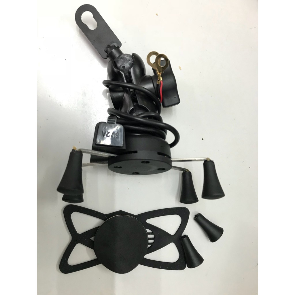Kẹp Điện Thoại Chân Gương Xe Máy Kèm Cổng Sạc 2A ( Chất Liệu Thép)