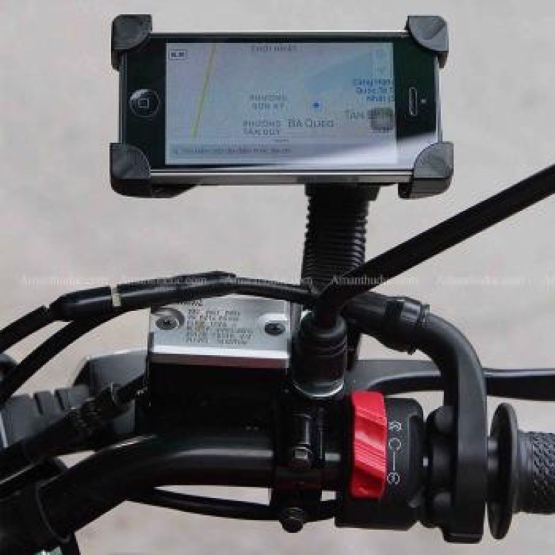 - Chân đỡ điện thoại dài 22cm bằng thép được gắn trực tiếp vào chân của gương chiếu hậu rất chắc chắn và tiện lợi, không cần phải chế độ lại gì cả.Có thể điều chỉnh uốn cong các hướng đảm bảo quan sát tốt nhất.