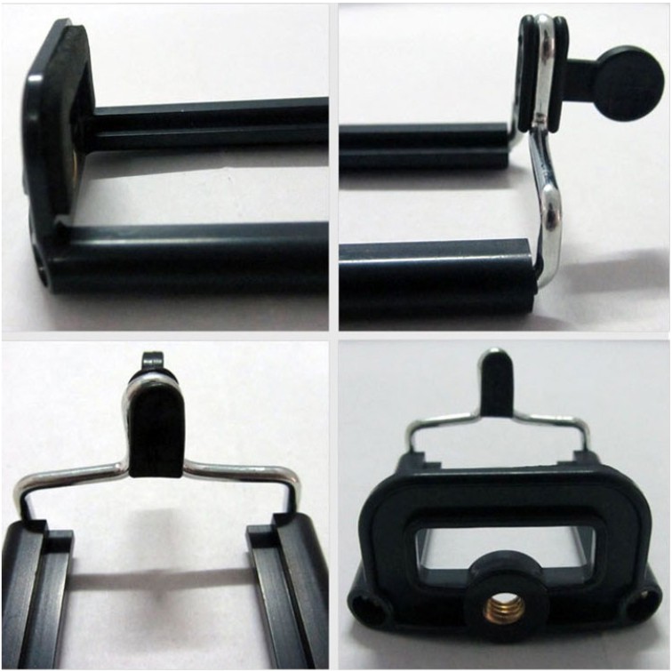 - Kẹp có thể điều chỉnh, về cơ bản áp dụng cho tất cả các điện thoại di động. Đầu kẹp có cao su để tránh rơi rớt điện thoại.