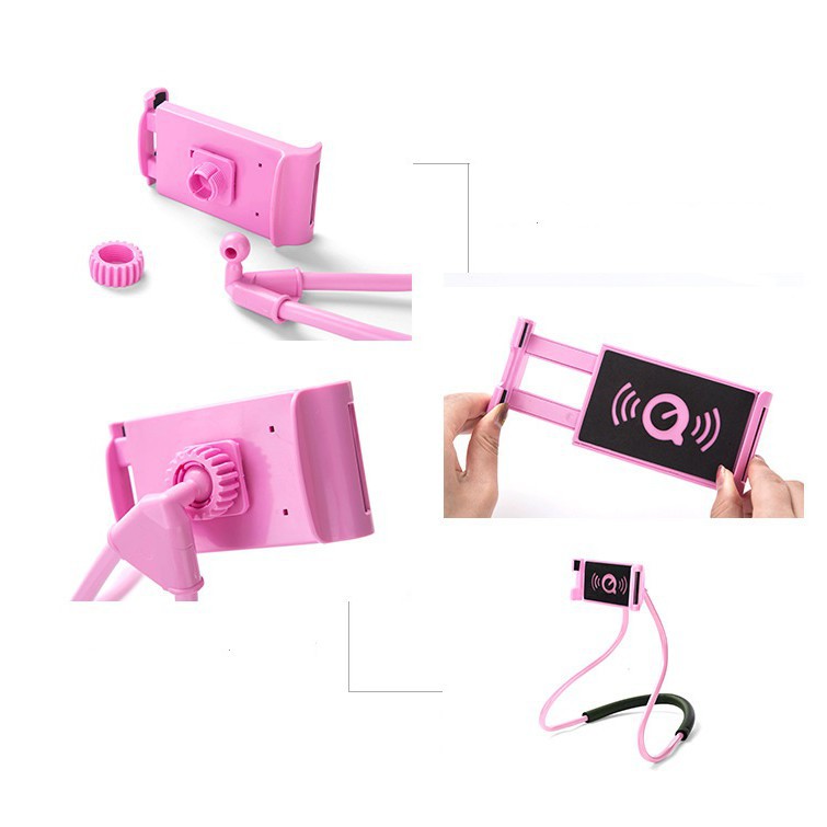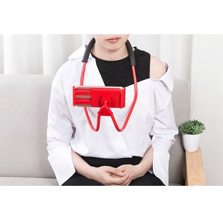 - Giá đỡ điện thoại đa năng có thiết kế linh hoạt, có vòng đeo lên cổ hoặc bụng thuận lợi để sử dụng cho nhiều mục đích khác nhau như chụp hình selfie, xem phim, chơi game.- Vòng đeo cổ được gắn thêm miếng đệm xốp tạo cảm giác êm cổ, thoải mái khi sử dụng.