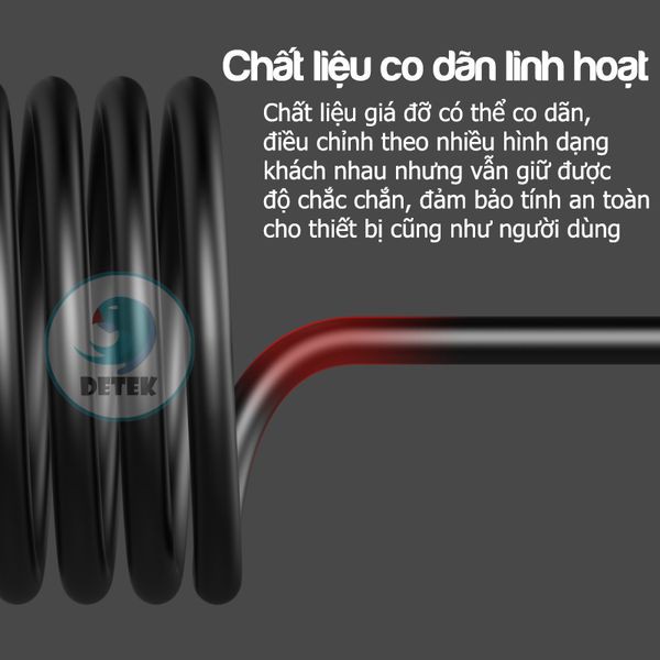 Kẹp đuôi khỉ choàng cổ Detek Lazy Holder được cấu tạo bằng chất liệu có thể linh hoạt thay đổi hình dáng nhưng vẫn vô cùng chắc chắn. Cổ kẹp có chốt khóa giúp bạn giữ vị trí góc xoay, đảm bảo an toàn cho thiết bị cũng như người dùng.