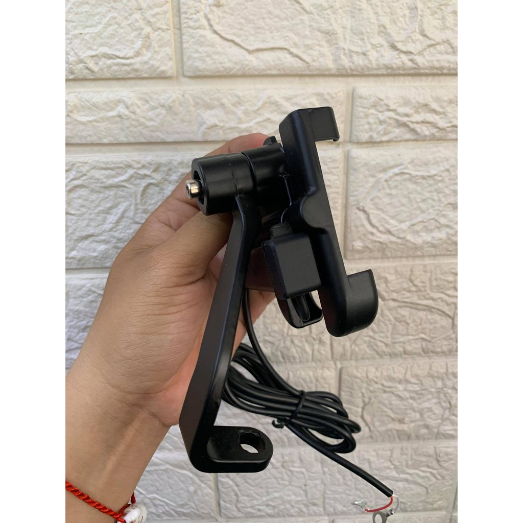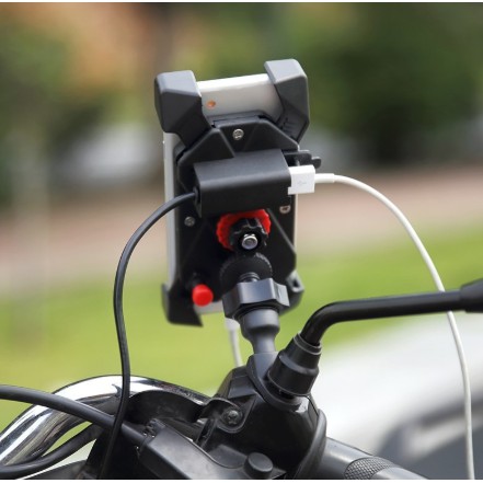 Giá đỡ điện thoại kiêm cổng sạc USB gắn chân gương xe máy