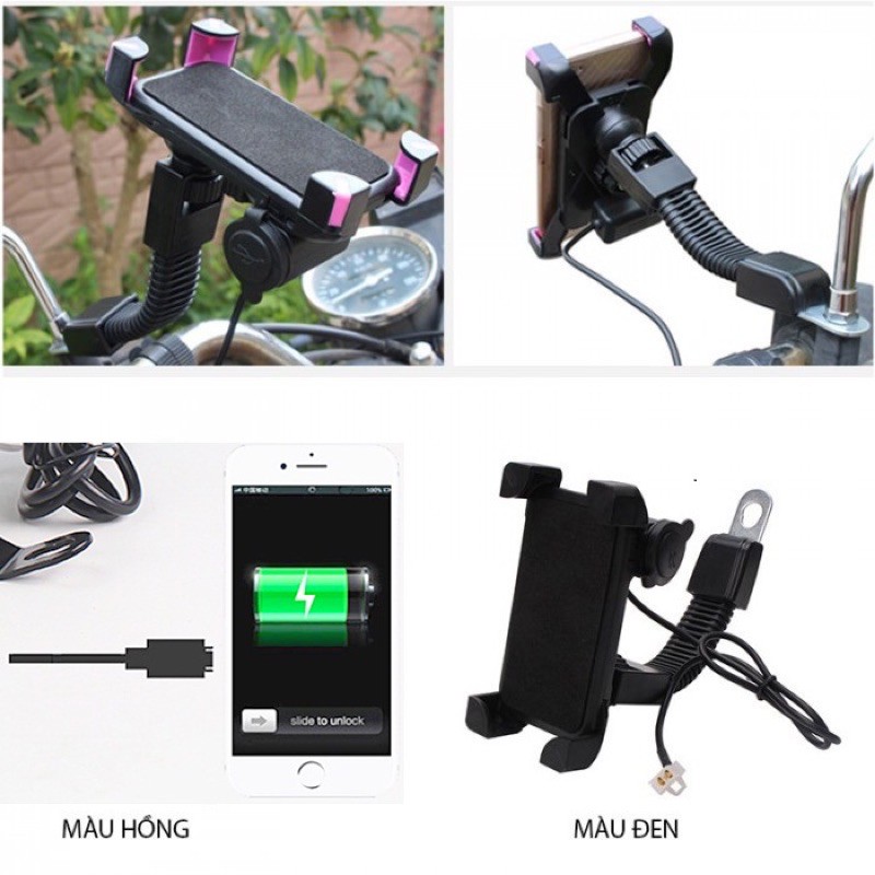 Kẹp Điện Thoại Gắn Xe Máy kiêm Bộ sạc USB điện thoại gắn trên Mô tô, xe máy, xe đạp..