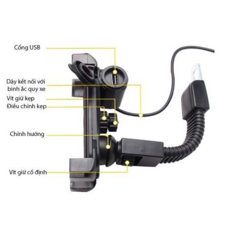 Kẹp Điện Thoại Gắn Xe Máy kiêm Bộ sạc USB điện thoại gắn trên Mô tô, xe máy, xe đạp...
