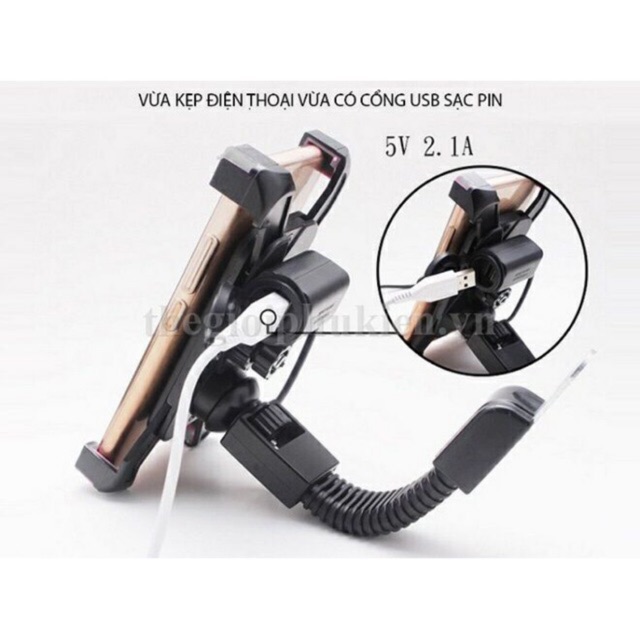 Kẹp Điện Thoại Gắn Xe Máy kiêm Bộ sạc USB điện thoại gắn trên Mô tô, xe máy, xe đạp...