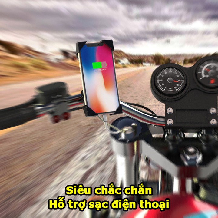 Kẹp điện thoại giá đỡ điện thoại gắn trên xe máy xe đạp có hỗ trợ sạc gắn bình ác quy* Sản phẩm được thiết kế chuyên nghiệp, chắc chắn không lo bị rơi trong mọi địa hình.
