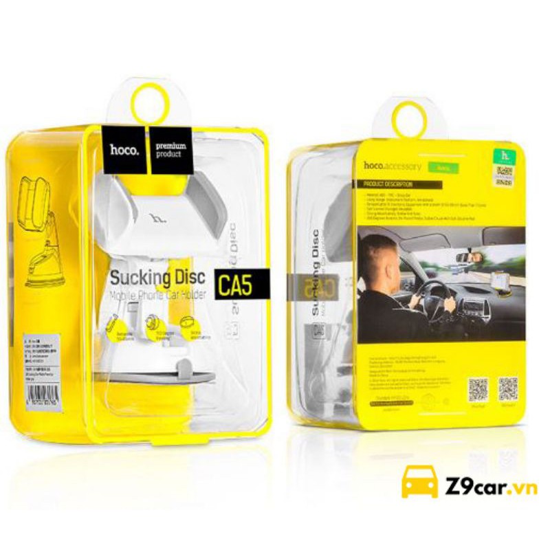 Kẹp điện thoại hoco CA5 gắn oto xoay 360 độ, có thể hút trên kính và hút trên taplo - Hàng chính hãng