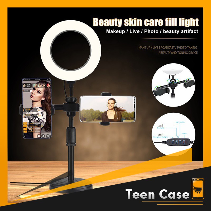 Điện Thoại & Phụ Kiện > Phụ kiện > Phụ kiện selfie > Giá đỡ || Kẹp điện thoại livestream để bàn giá rẻ 2 điện thoại 1 đèn và giá đỡ 3 kẹp điện thoại để bàn tiện íchCòn hàng