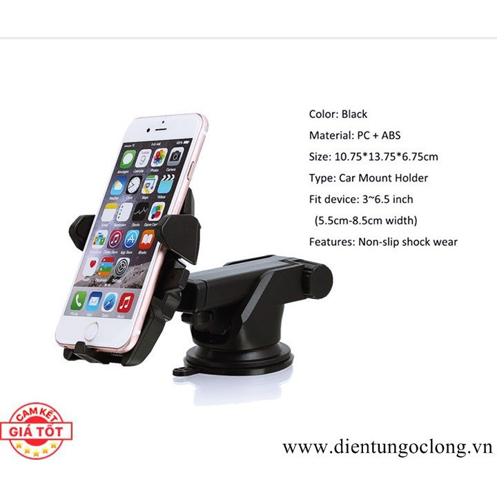 Giá Đỡ Điện Thoại Trên Xe Hơi LM-730Với thiết kế nhỏ gọn, thanh lịch và trang nhã, phần đế được thiết kế hút chân không cực kỳ chắc chắn, cho phép bạn gắn kết trên bất kỳ mặt phẳng nào như kính, gỗ, gạch men.... Bạn có thể gắn bất kỳ nơi nào bạn thích, trên xe hơi, phòng làm việc, phòng ngủ, bếp ăn... dế iu của bạn sẽ không bị rơi vỡ, trầy xước. Đầu xoay 360 độ, điều chỉnh mọi góc xem vừa tầm mắt nhất. Chất liệu nhựa cao cấp, để được mọi điện thoại có chiều rộng từ 5.5 tới 8.5cm, chiều cao không hạn chế.