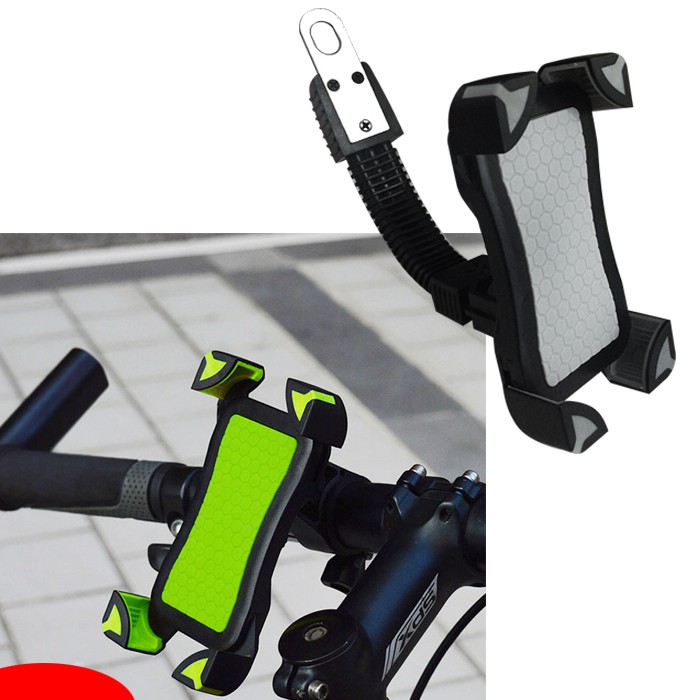 Chân giá đỡ điện thoại làm từ sắt có thể uốn dẻo tùy biến, chỉnh tương tác mọi góc rất dễ dàng. Giá đỡ được sử dụng để kẹp vào phần ghi đông phía trước xe. Bạn không phải lo lắng máy bị văng ra ngoài ngay cả khi đi ở những địa hình hiểm trở nhất. Đặc biệt, phần kẹp điện thoại có lớp mút bảo vệ bên trong có tác dụng chống trơn trượt, tránh tuột máy đồng thời không làm máy bị xước khi kẹp.