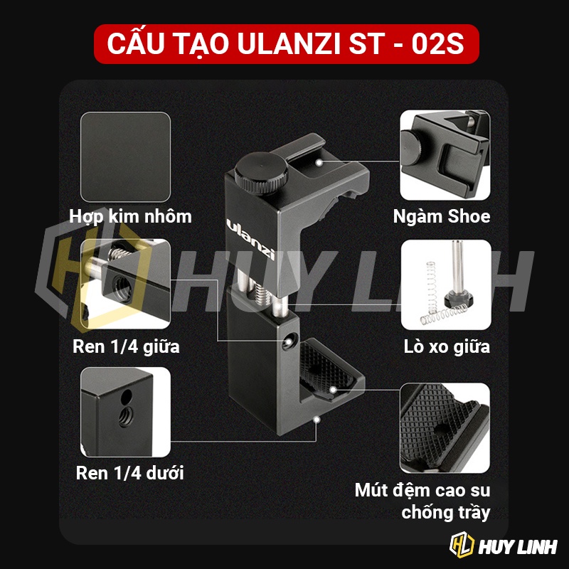 ✔️ Kẹp Điện Thoại Ulanzi ST-02S Là phụ kiện quay phim để gắn điện thoại lên tay cầm, tripod hoặc các bộ combo ghi hình.