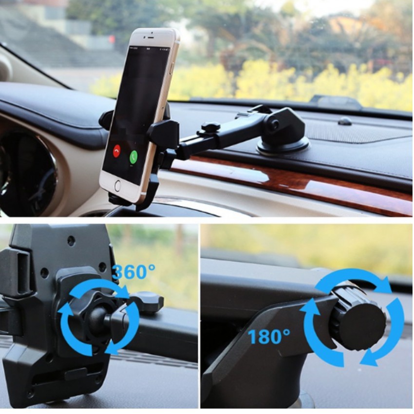 Với tính năng thay đổi được khoảng cách tới người dùng và xoay 360, giá đỡ giúp cho người lái xe thuận tiện hơn khi cần giao tiếp điện thoại trong lúc đang điều khiển xe, giảm thiểu rủi ro cho chủ xe và tai nạn cho người khác đang tham gia giao thông. Độ bám dính tuyệt vời trên bề mặt kính đảm bảo an toàn cho máy điện thoại kể cả khi đi vào khu vực đường xấu. Cơ cấu giá đỡ kẹp điện thoại chắc chắn giúp bảo vệ cho chiếc điện thoại không bị rơi khỏi giá treo và chỉ cần 1 thao tác (ấn, bấm) đơn giản để gắn/tháo điện thoại.Thông tin sản phẩm: