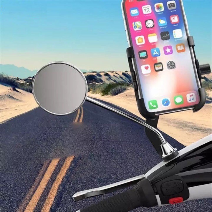 Kẹp Điện Thoại Xe Máy Gắn Gương Xe Máy Model C2 Chất Liệu Hợp Kim Xoay 360 Độ- Bạn đi xe máy sử dụng điện thoại vừa chạy vừa cầm đt rất nguy hiểm