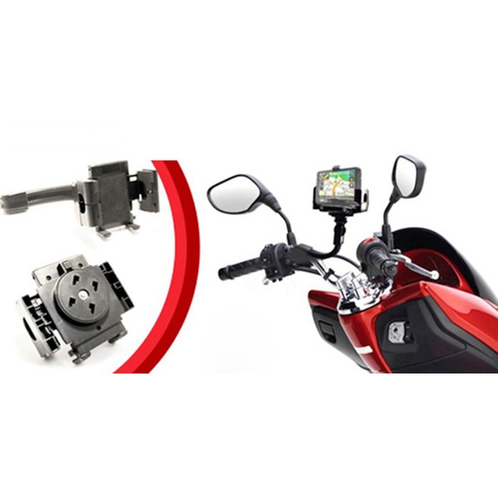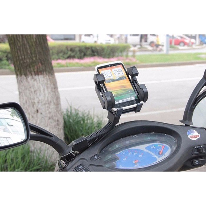 Giá đỡ điện thoại gắn cho xe máy là phụ kiện giá đỡ gắn vào chân kính chiếu hậu (lỗ 10mm) cho hầu hết chủng loại mô tô, xe máy hiện nay tại Việt Nam.