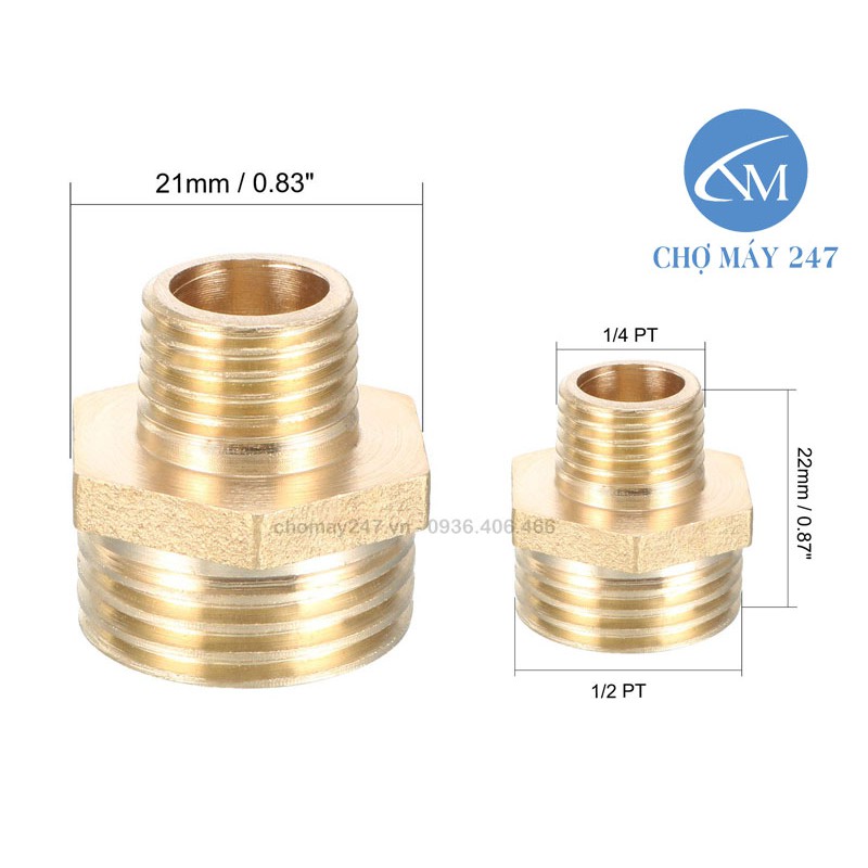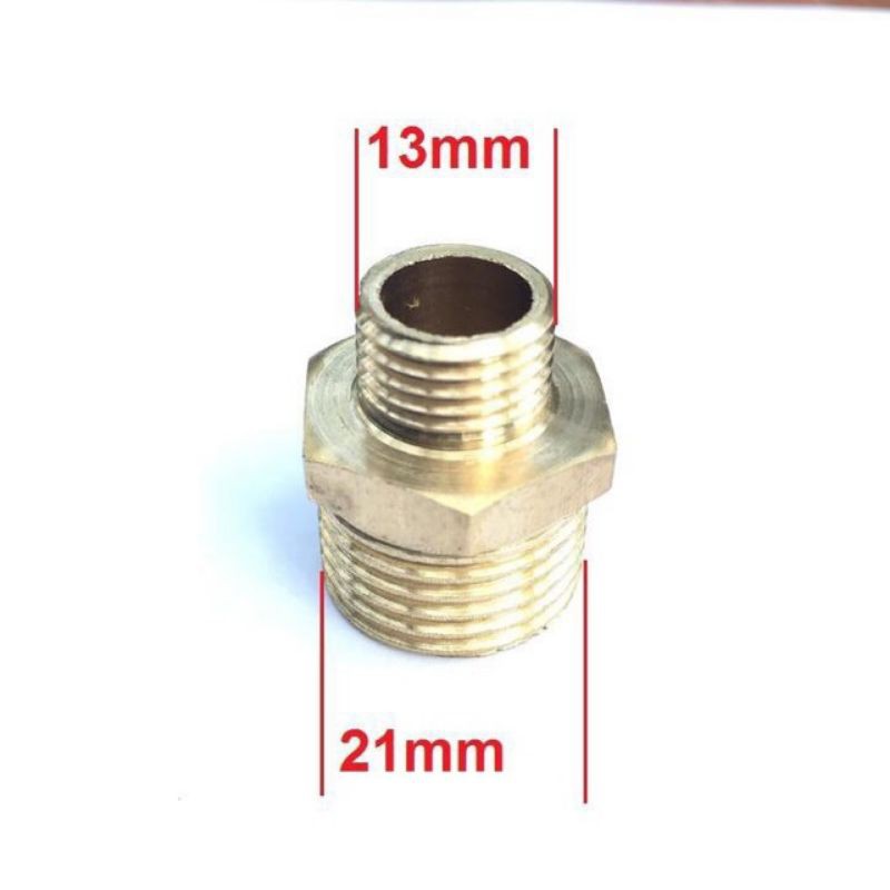kép đồng chân ren 21 và 1 đầu chân ren 13mm - đồng thau