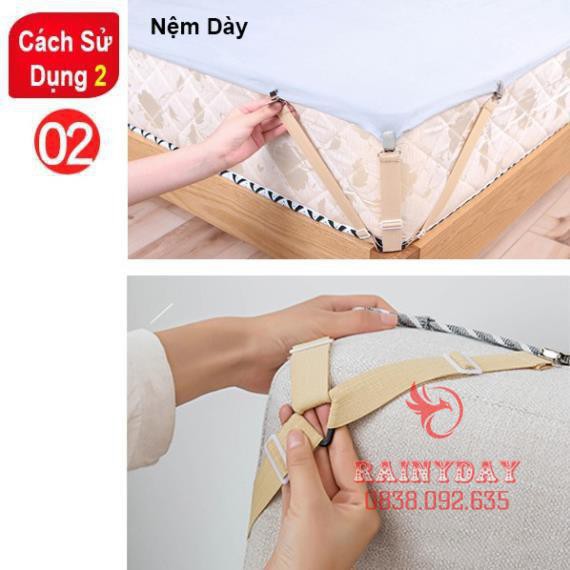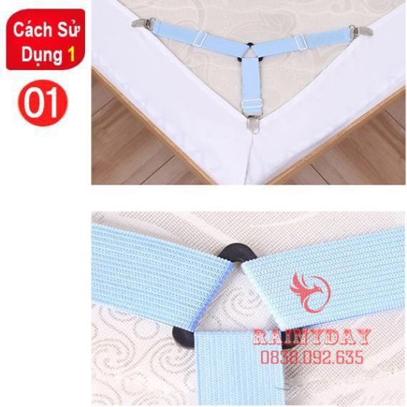 - Kẹp Chống Xê Dịch Drap Trải Giường,Kẹp Cố Định Chăn Ga Giường,Dây Chằng Góc Nệm 4 Chiều Giữ cho 4 góc drap giường không bị xê dịch giúp cho chiếc giường của bạn luôn gọn gằng, ngăn nắp, cho giấc ngủ sâu hơn và ngon hơn.