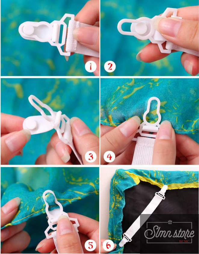 Ga giương, drap hay bị nhăn nhúm sau mỗi giấc ngủ, bạn mất nhiều thời gian để chỉnh lại nó, ban muốn rút ngắn thời gian, Bộ 4 dây chằng góc nệm tiện dụng sẽ giúp cố định vị trí ga trải giường, giúp ga giường không bị xê dịch và bung ra khỏi nệm.