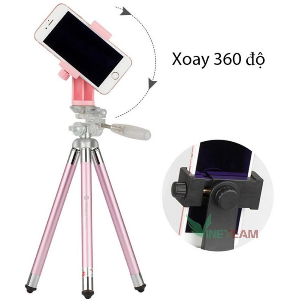 2. Xoay 360 °: Đi kèm cánh tay xoay để điện thoại được sử dụng theo chiều dọc hoặc ngang mà không cần phải lấy điện thoại ra khỏi chân máy.