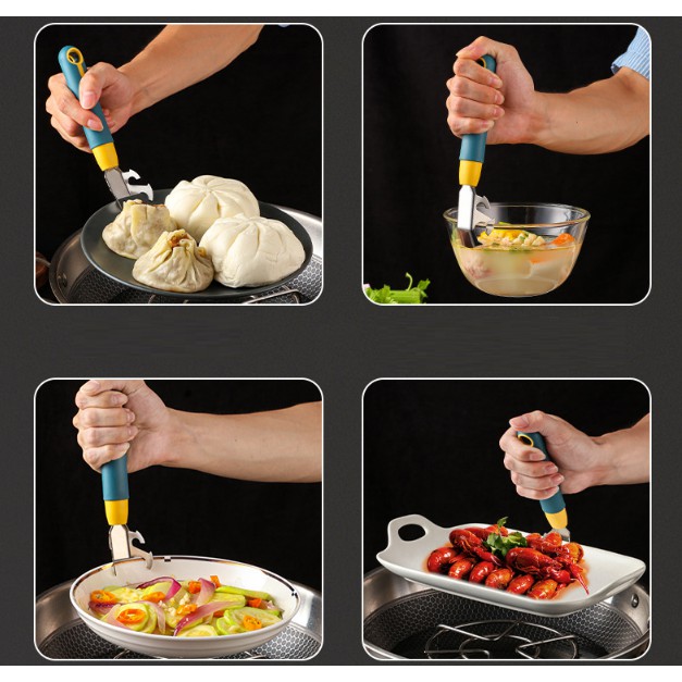 KẸP GẮP CHỐNG NÓNG– Kẹp gắp được thiết kế như 1 chiếc kìm với một đầu kim loại chắc chắn, tay cầm nhựa cách nhiệt, đầu kim loại có tác dụng giữ chặt vật thể, giúp bạn dễ dàng gắp tô, chén nóng mà không sợ bị bỏng