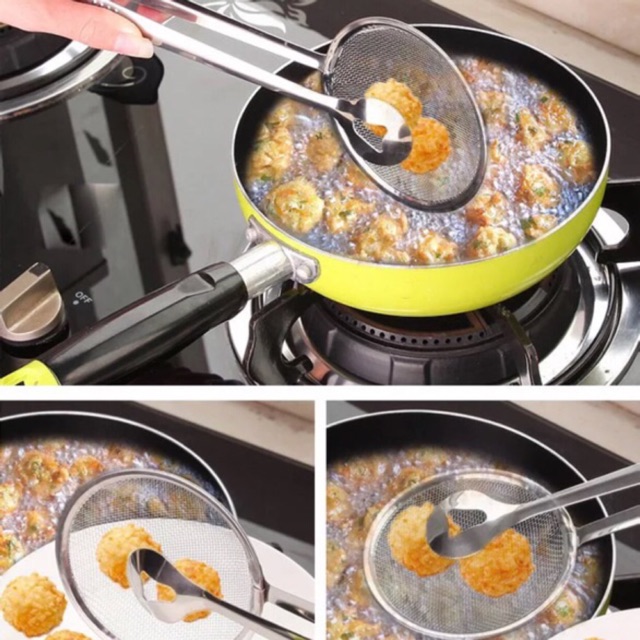- Dụng cụ gắp thực phẩm có lưới ráo dầu tiện lợi