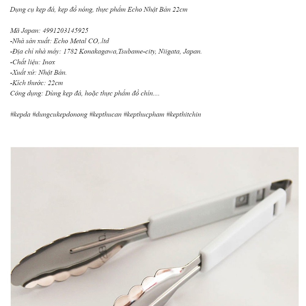 Giới thiệu Kẹp gắp đồ ăn bằng Inox Echo Metal 22cm Hàng Nhật
