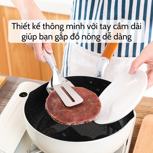 – Thiết kế thông minh với tay cầm dài, giúp bạn gắp đồ nóng, đồ nướng một cách dễ dàng.