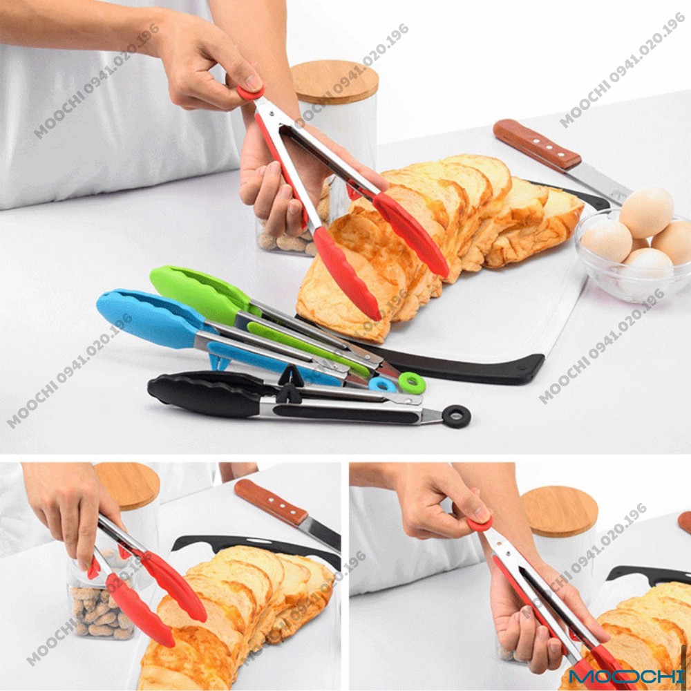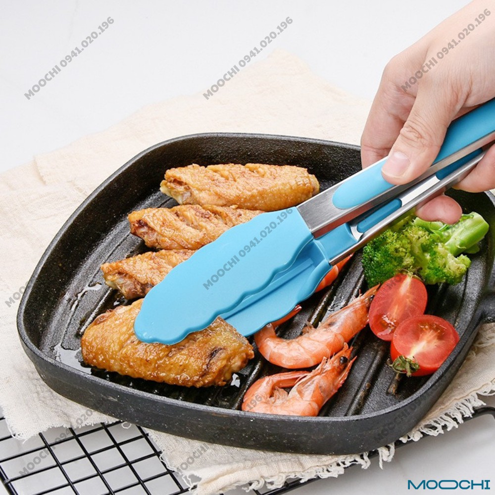 Kẹp Gắp Đồ Ăn, Thịt Nướng Có Tay Cầm Chống Nóng Chất Liệu Inox 304 Tay Cầm Phủ Nhựa PVC Chống Nhiệt Cao Cấp