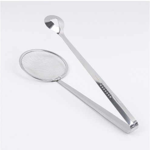 Thiết kế đặc biệt, tiện lợi với 1 bên là đầu kẹp, 1 bên là mặt lưới, giúp bạn có thể gắp trực tiếp thức ăn đang chiên, luộc, hầm… thực phẩm sẽ được ráo nước cũng như hạn chế tối đa việc đọng lại dầu mỡ.