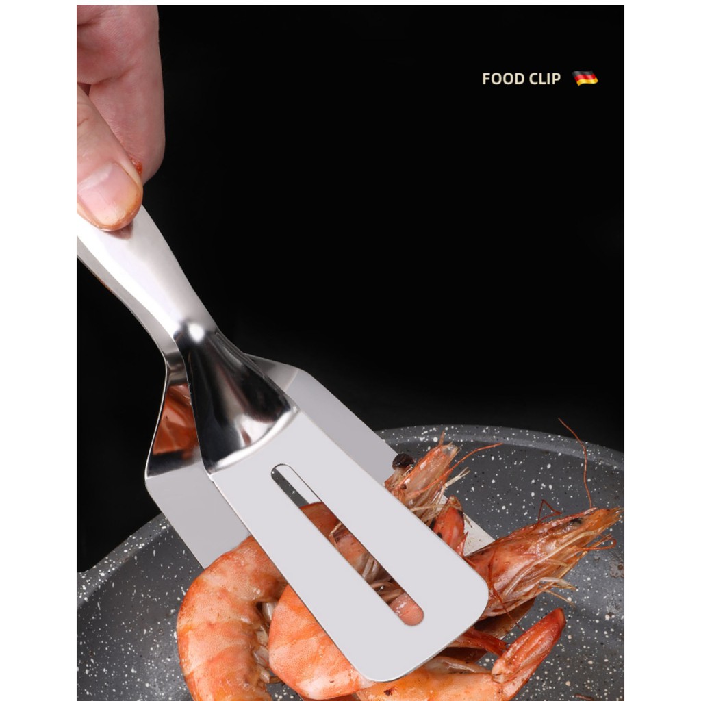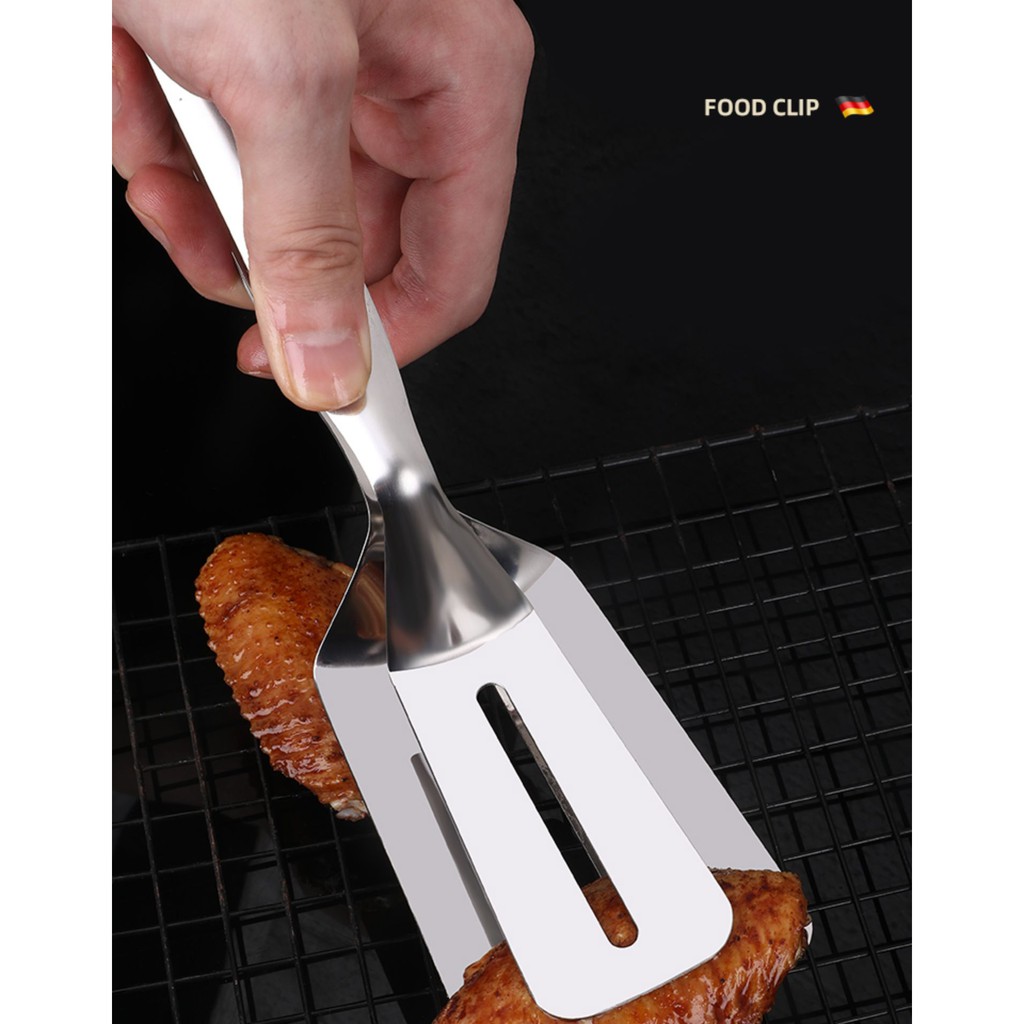 - Thiết kế thông minh với tay cầm dài, giúp bạn gắp đồ nóng, đồ nướng một cách dễ dàng. Đầu kẹp có khả năng chống dính, giúp kẹp thức ăn chắc chắn, chống trơn trượt hiệu quả.