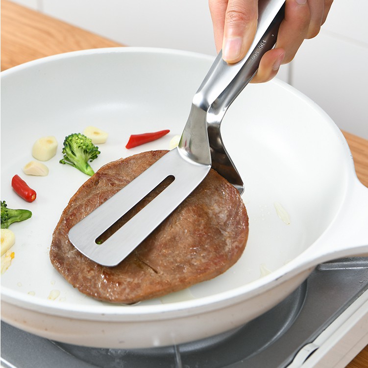 - Kẹp gắp chuyên dụng cho đồ chiên sẽ không làm bong tróc lớp chống dính của chảo, làm trầy lòng chảo như các loại kẹp gắp bình thường