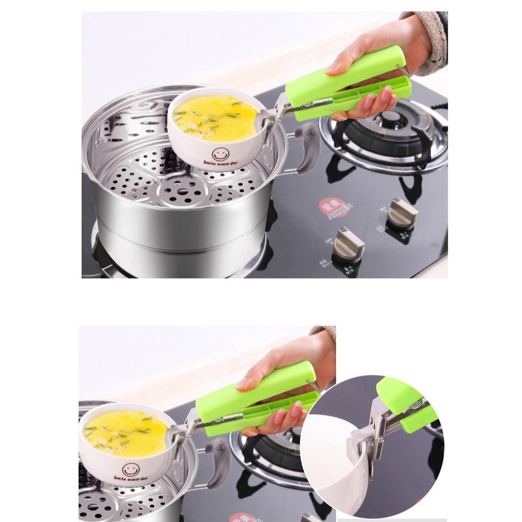 -Những chiếc nồi nóng bỏng, những chiếc bát đĩa trong lò vi sóng, trong nồi vừa hấp xong có thể làm bỏng tay chị em chúng ta khi vô tình chạm phải. Đôi khi những chiếc lót tay không phát huy hết tác dụng những lúc cần thiết. Đừng lo, đã có dụng cụ kẹp gắp bát đĩa nóng, dụng cụ tiện ích này cho bạn dễ dàng lấy mọi món đồ nóng bỏng
