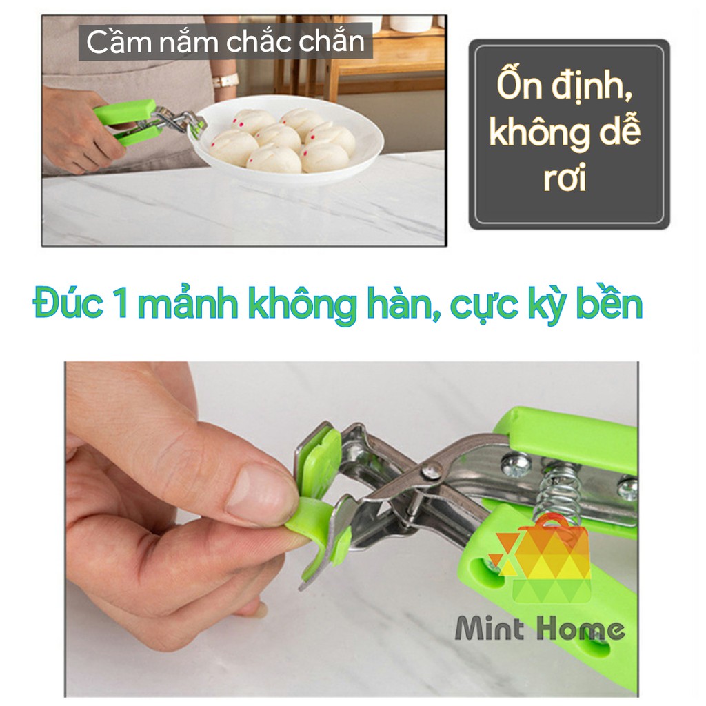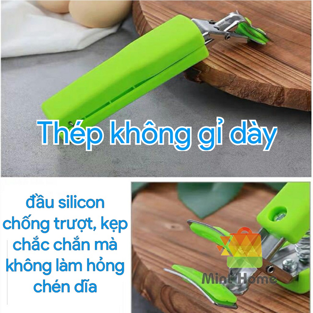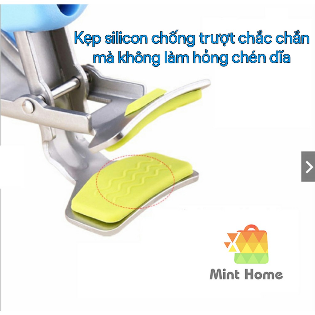 Thiết kế đầu kẹp có lót silicon chống trượt nên kẹp bát đĩa nóng rất chắc chắn và an toàn không sợ rơi vỡ